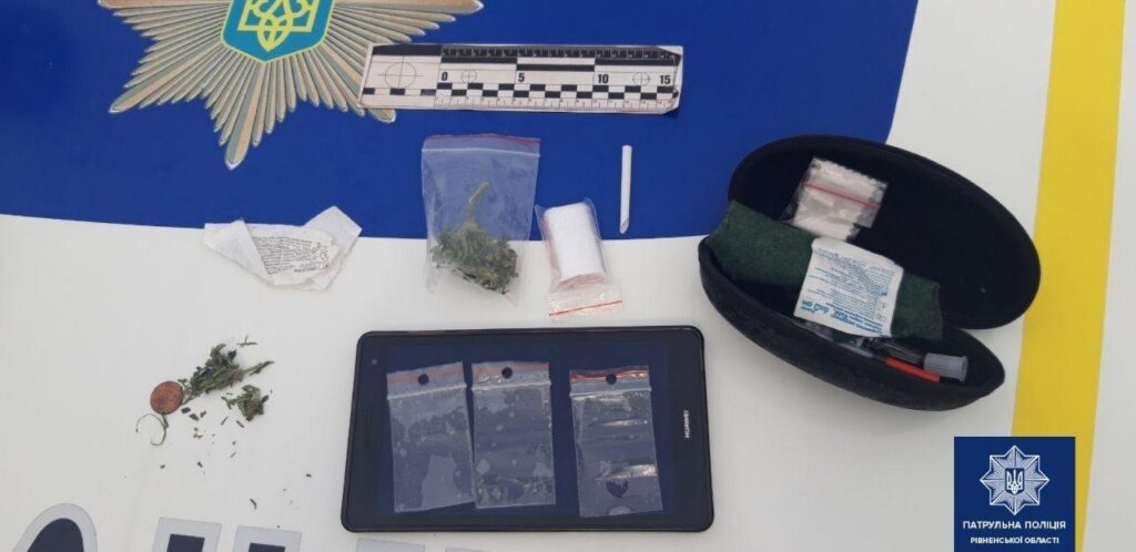 Рівнянин явно нервував, тому патрульні вирішили його перевірити. В сумці 37-річного чоловіка виявили поліетиленові пакетики з речовинами, схожими на наркотичні, а також трубку для вживання наркотичних засобів.