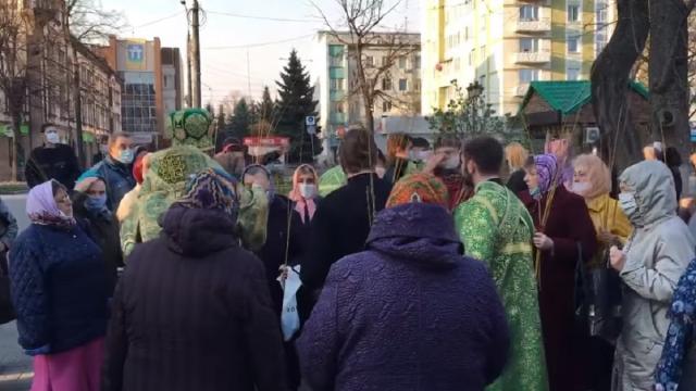 У Рівному священник Української православної церкви Московського патрірхату провів масове освячення вербових галузок. Трапилося це ще надвечір 11 квітня. Парафіян прийшло чимало, серед них було багато людей пенсійного віку.