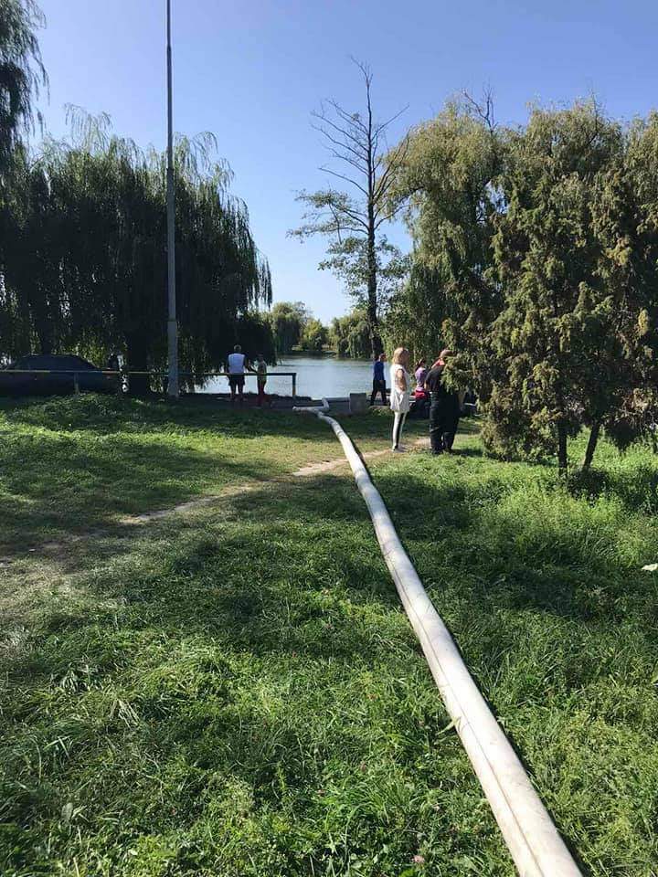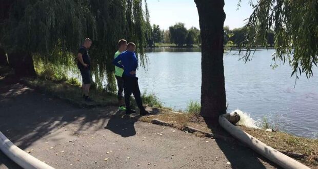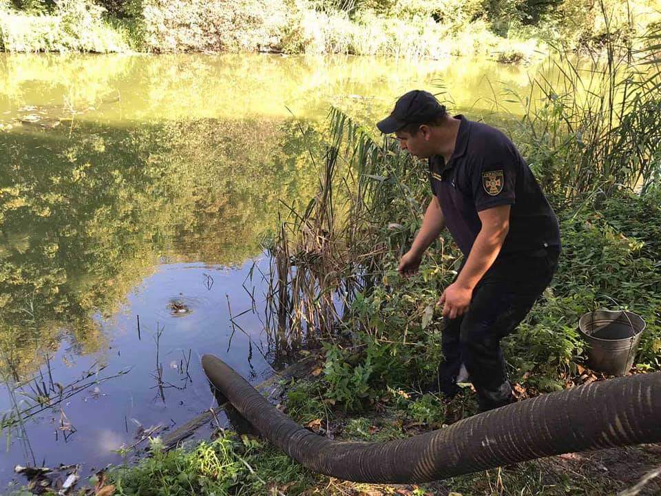 Тому з метою запобігання подальшої масової загибелі риби на водоймі рятувальники проводять аерацію, беручи свіжу воду з річки Устя та перекачуючи її у водойму.