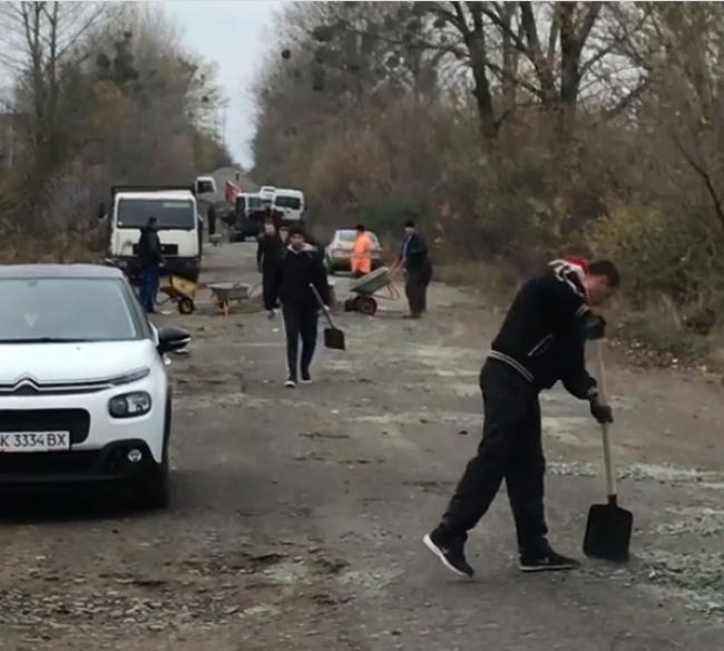 Втомившись чекати, коли влада розпорядиться поремонтувати страшні ями на дорозі з Рівного до Городища, жителі зробили це самі.