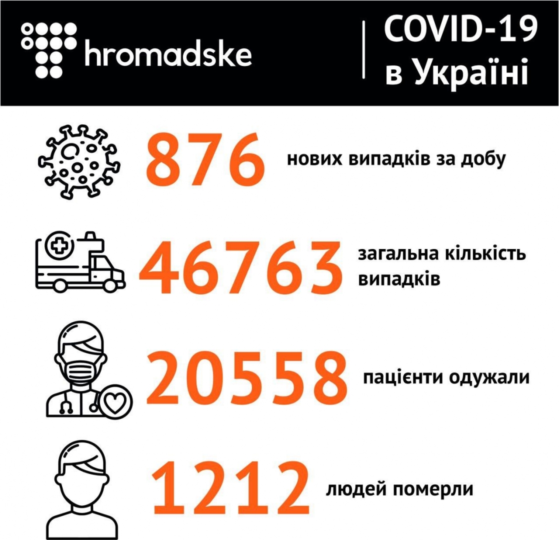 В Україні за добу COVID-19 виявили у ще 876 людей