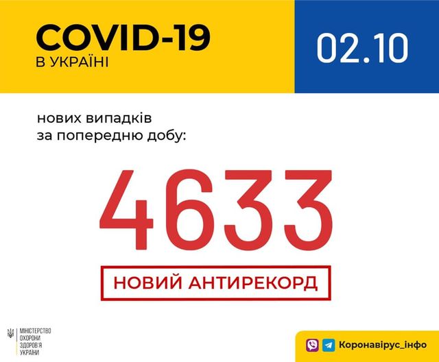 В Україні зафіксовано 4 633 нових випадки коронавірусної хвороби COVID-19 — це антирекорд кількості нових хворих за добу.
