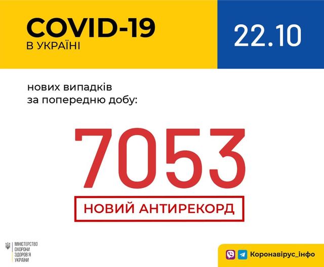 В Україні зафіксовано 7 053 нових випадки коронавірусної хвороби COVID-19 — це антирекорд кількості нових хворих за добу