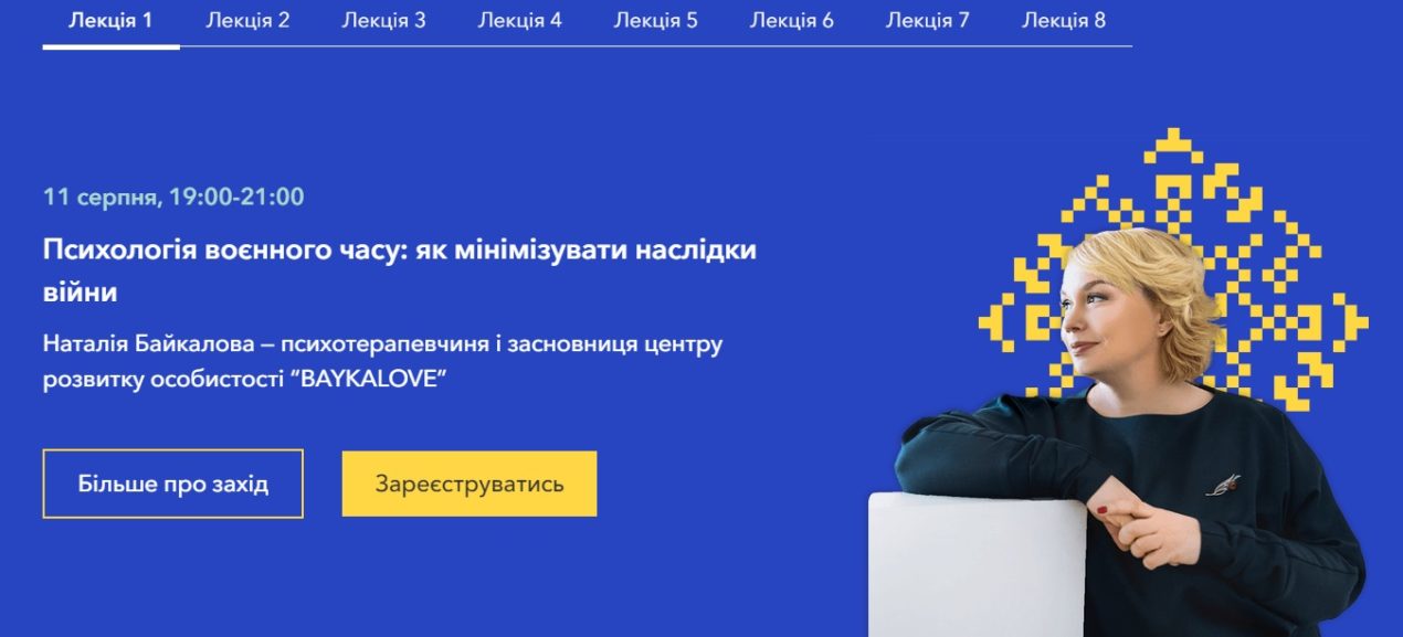 Курс складається з 8 інтерактивних лекцій, під час яких експерти розкажуть, як розібратися в інструментах підвищення рівня психологічної стійкості, зокрема адаптації до стресу, здатності «приходити до тями» після важкого досвіду й шукати мотивацію в умовах війни.