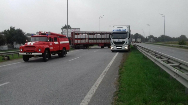 Вантажівки зіткнулися на Київ-Чоп: одна з них перегородила дорогу (ФОТО)
