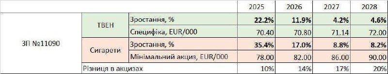 Законопроєкт №11090 підтримали 237 депутатів. Цей закон установлює нові розміри ставок акцизного податку на тютюнові вироби з огляду на мінімальний рівень, визначений Директивою Ради Європейського Союзу.