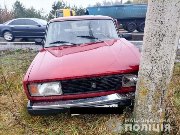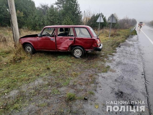 Від удару легковик відкинуло за межі проїзної частини, де він зіткнувся з електроопорою.