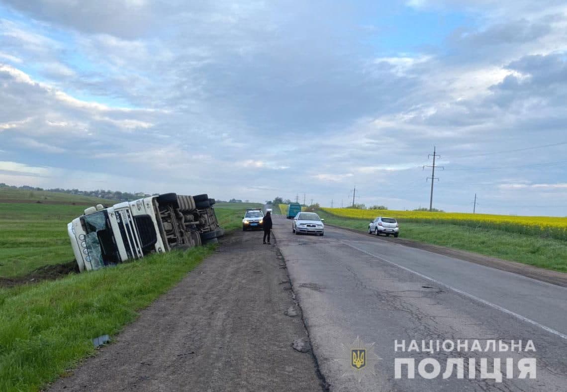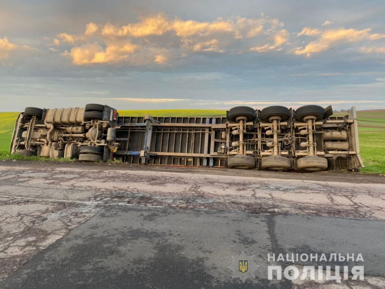 Внаслідок перекидання вантажівки травмувався водій