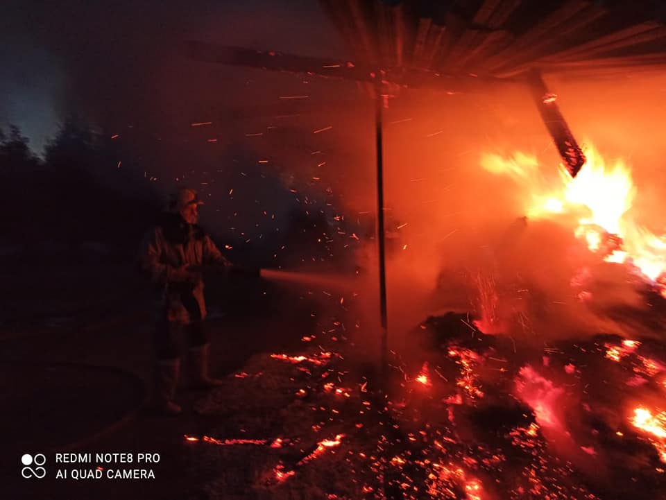 Вогнем знищено піднавіс та 45 тюків соломи.