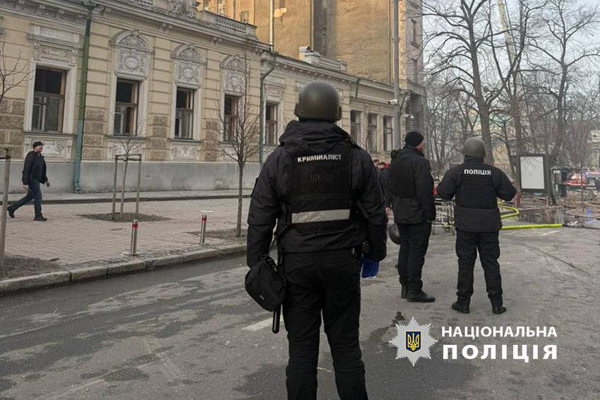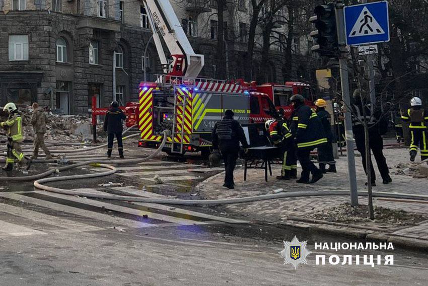 Внаслідок ворожої атаки у Печерському районі сталось часткове руйнування 4-6 поверхів житлового будинку, а також загоряння на даху поруч розташованої нежитлової будівлі.