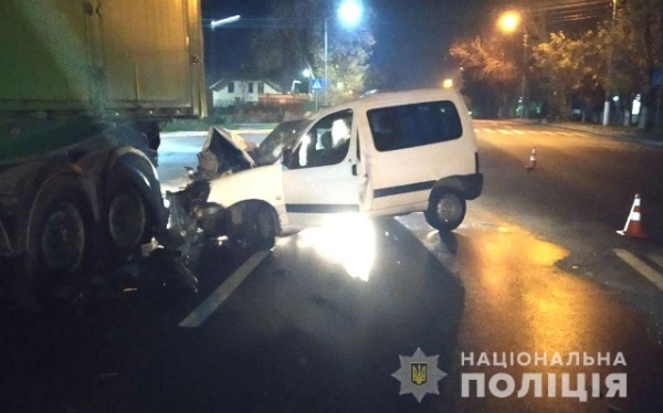 Поліцейські на місці події встановили, що 38-річний рівнянин, керуючи автомобілем Peugeot Partner, не вибрав безпечної швидкості руху, не врахував дорожню обстановку та допустив зіткнення із напівпричепом припаркованої вантажівки Scania, повідомляє пресслужба поліції.