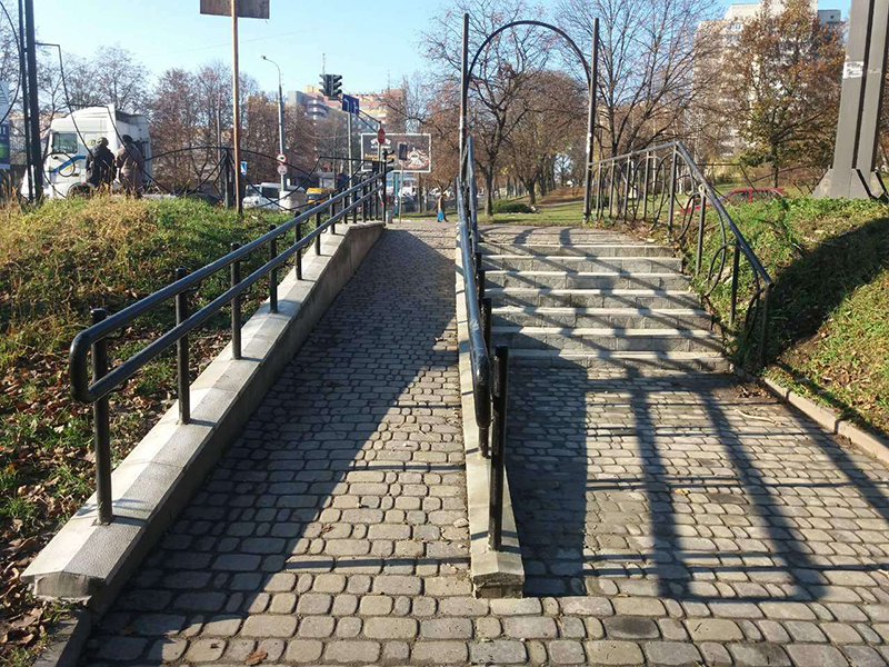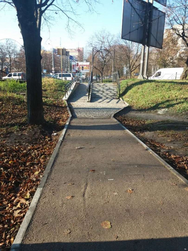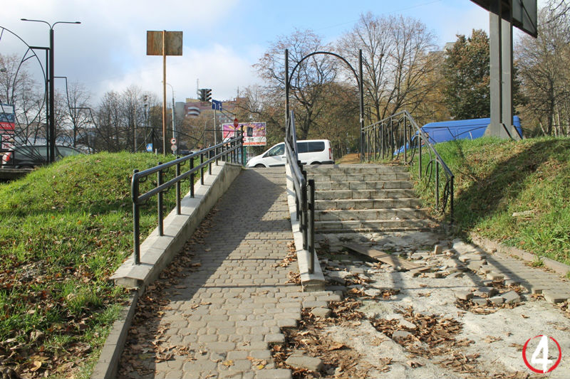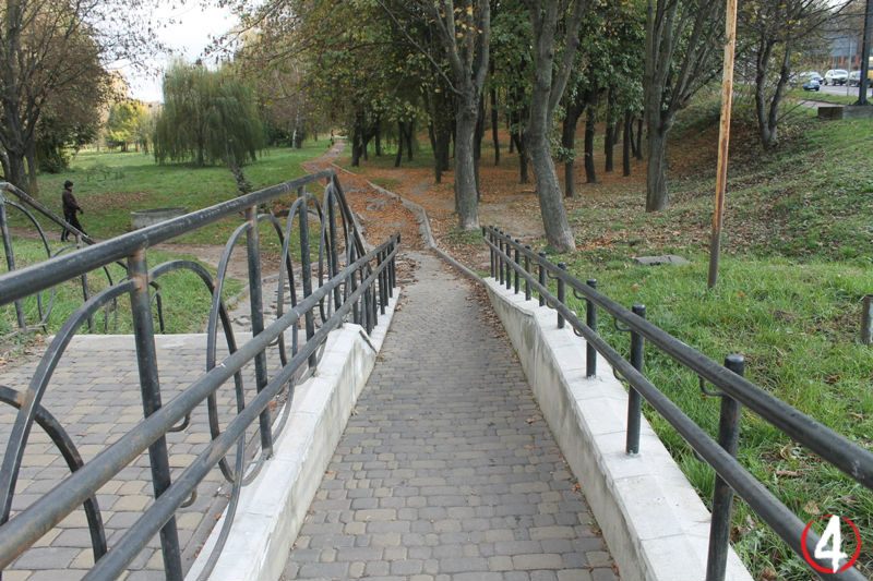 Лавочки та доріжку у цій ділянці парку вирішили не робити з міркувань безпеки руху. Мовляв, люди бачитимуть спуск і будуть напряму перебігати з протилежного боку вулиці, щоб зайти у парк.
