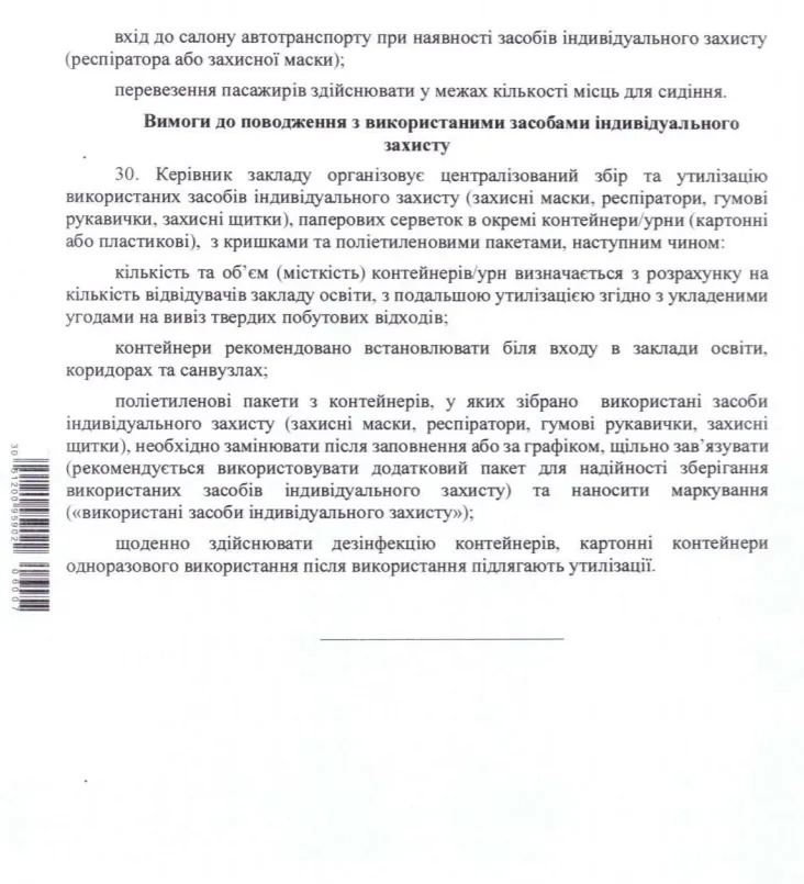 - У школах повинні бути окремі контейнери для збору використаних засобів індивідуального захисту: масок, рукавичок, серветок.