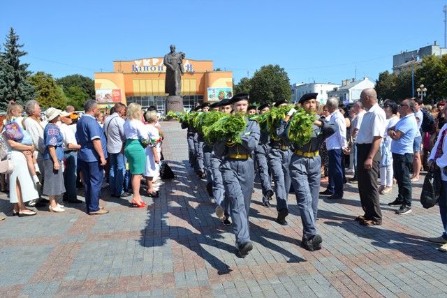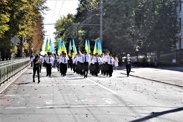 Святкова колона пройшла головною вулицею міста до майдану Незалежності. Попереду йшов військовий оркестр, далі – люди з національними стягами. Також долучилися представники іноземних делегацій з Польщі та Грузії.