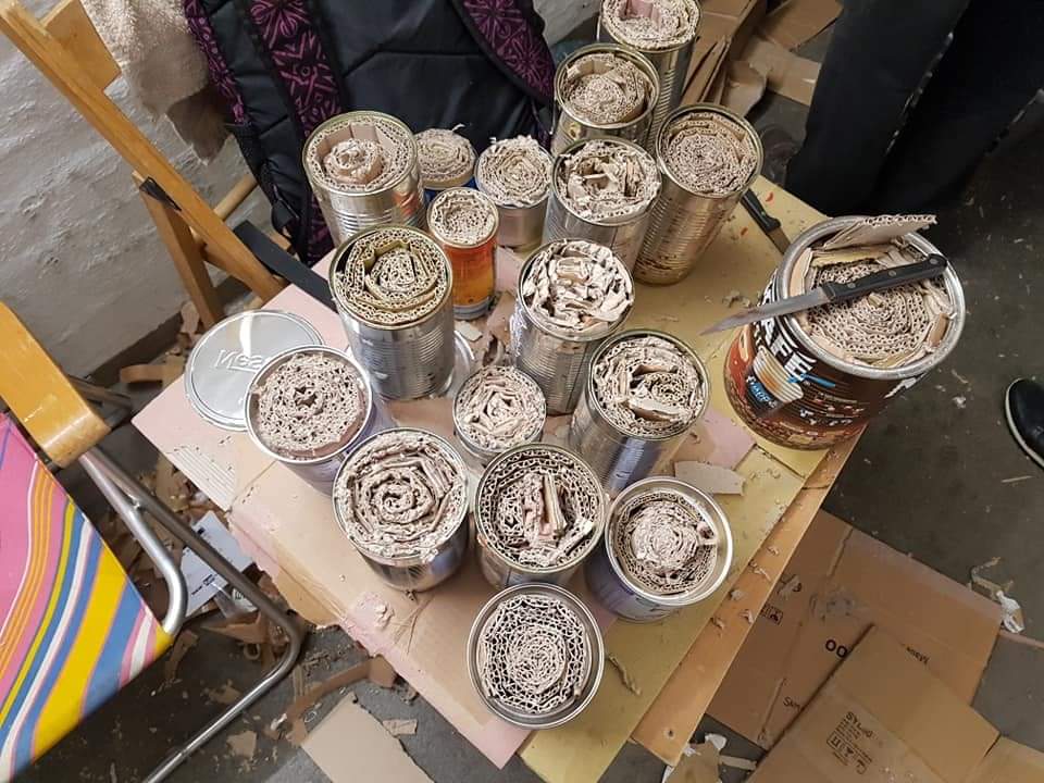 Усі разом виготовляють окопні свічки, які передають для військових в Україну на передову.