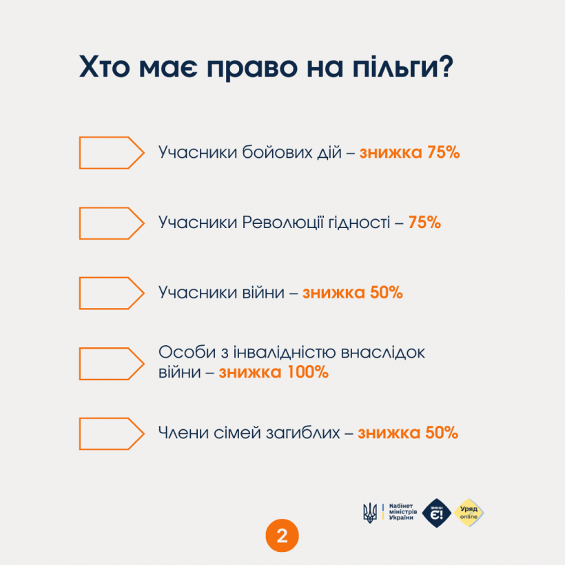Пільги доступні зокрема для учасників бойових дій, ветеранів війни та членів сімей загиблих.