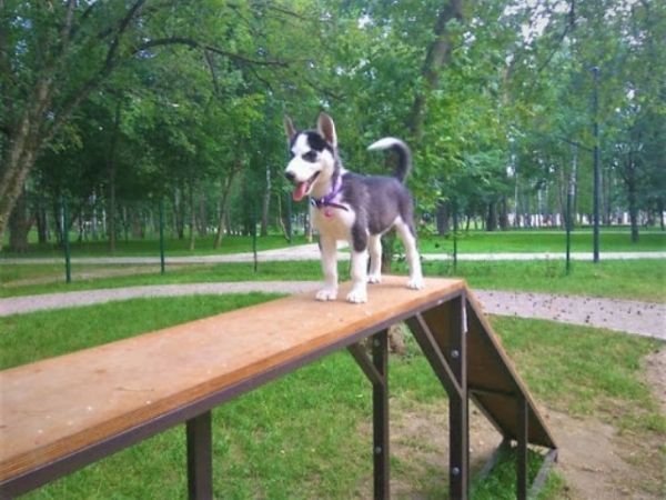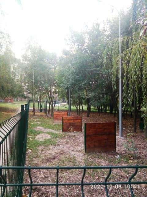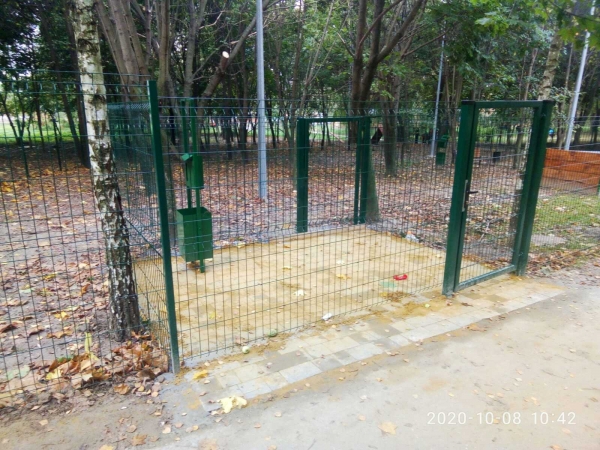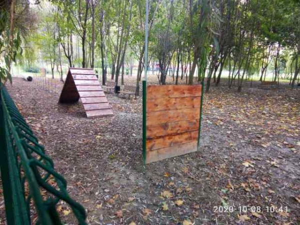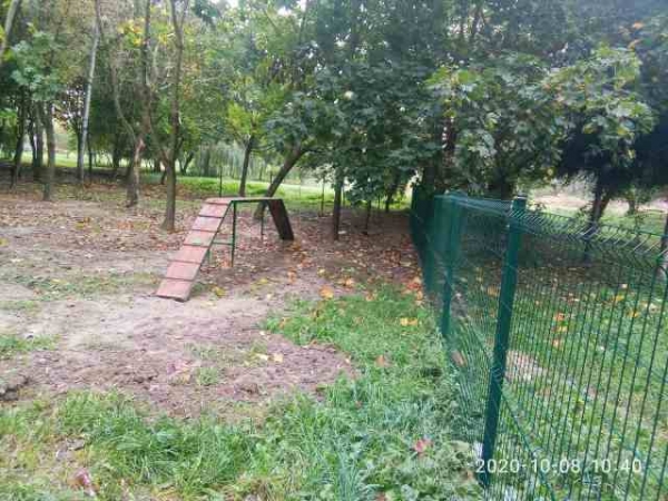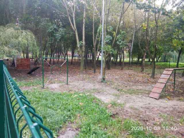 На ньому є атракціони для собак, освітлення. Заїзд до майданчика вимостили бруківкою.