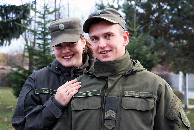 Закохані одружились у вересні. Щоранку разом ідуть на службу, хоча у самій частині майже не зустрічаються. Олена Познік проходить службу 2 роті 2 Галицької бригади, яка займається конвоюванням та охороною підсудних та засуджених. В неї дуже щільний графік: заняття, тренування, виїзди у складі варт. Євген Познік головний сержант взводу у 4 роті, яка займається охороною судових установ. Його день теж розписаний по хвилинам. Але…