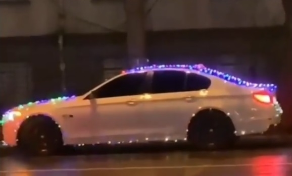 «Ялинка на колесах», — автомобіль з гірляндою привернув увагу мешканців м. Рівне (ВІДЕО)