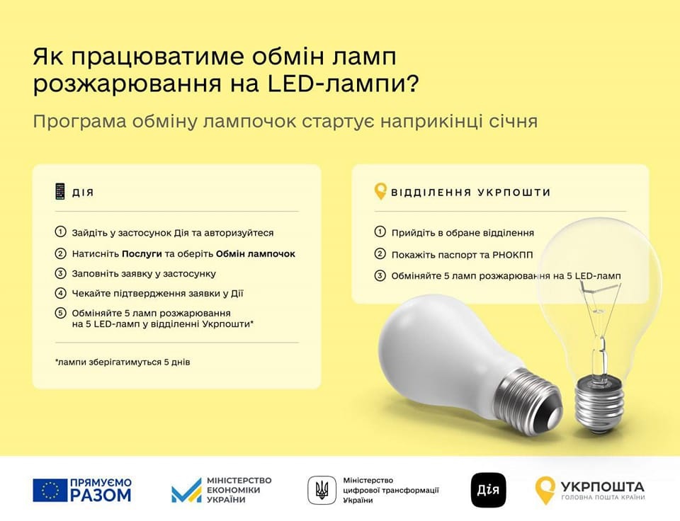 Відтак, замість 5 старих, але справних ламп розжарювання можна безкоштовно отримати 5 енергоощадних.