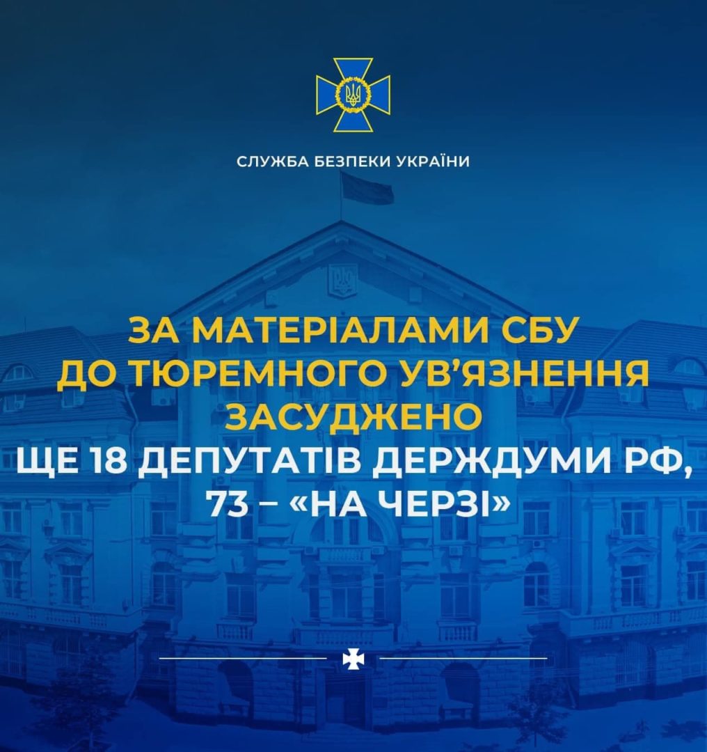 За матеріалами СБУ до тюремного ув’язнення засуджено ще 18 депутатів держдуми рф, 73– «на черзі»