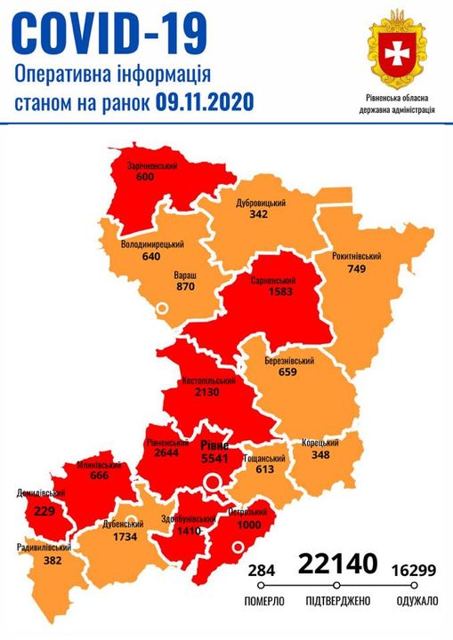 В області зареєстровано 284 летальних випадка спричинений COVID-19. Помер 83-річний житель с. Гвіздів Корецького району.