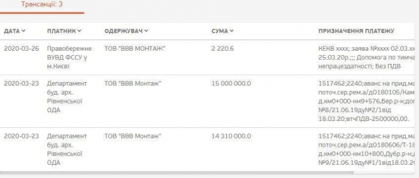 Куди ж поділася інші тридцять мільйонів, було не відомо до 23 березня. Бо ж саме цього дня департамент з питань будівництва і архітектури Рівненської ОДА перерахував цю суму коштів на рахунок фірми ТОВ «ВВВ Монтаж». Тридцять мільйонів – це аванс за ремонт доріг Березнівського та Дубровицького районів.
