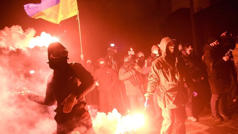Вони завершувалися вже і сутичками з Нацгвардією, і відносно мирним салютом та петардами біля будівлі Офісу генпрокурора Венедиктової.