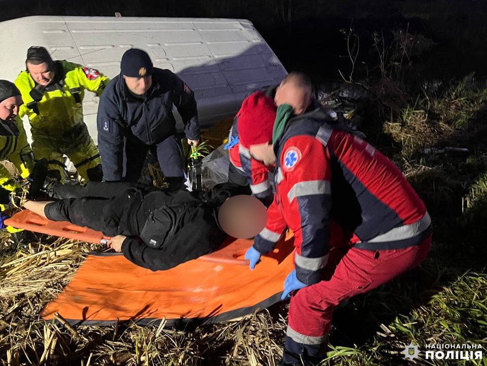 Працівники ДСНС деблокували кермувальника та витягли з кювету бус. Потерпілого із політравмою госпіталізували до лікарні.