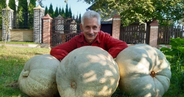 Житель Рівненщини власноруч виростив величезні гарбузи