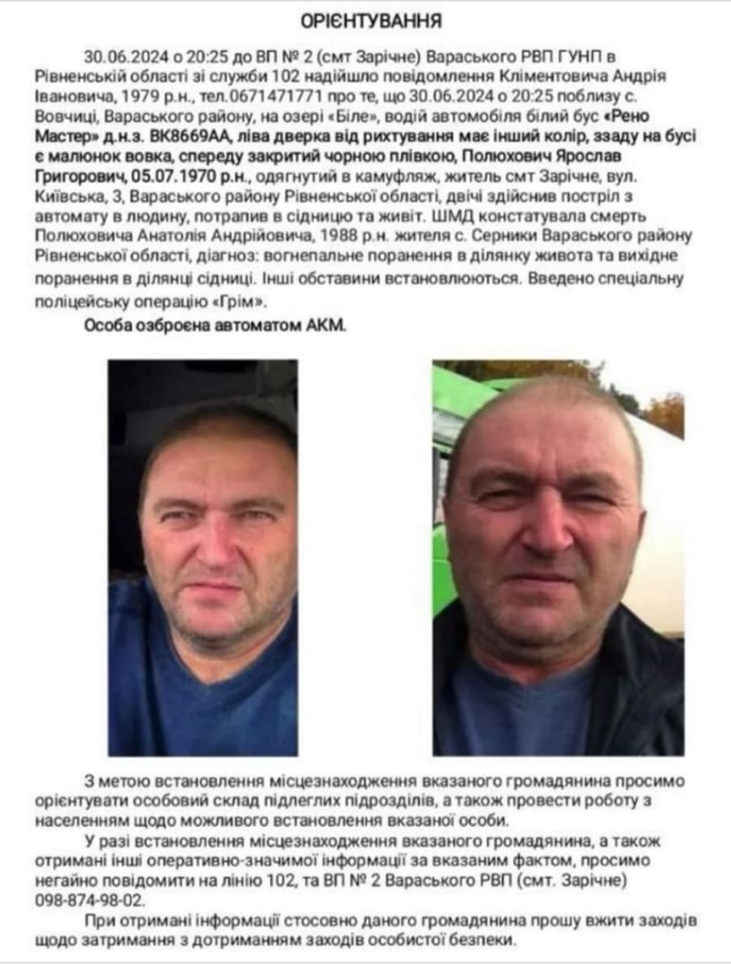 54-річного чоловіка, який 30 червня у селі Вовчиці Вараського району застрелив 35-річного знайомого, затримали поліцейські.