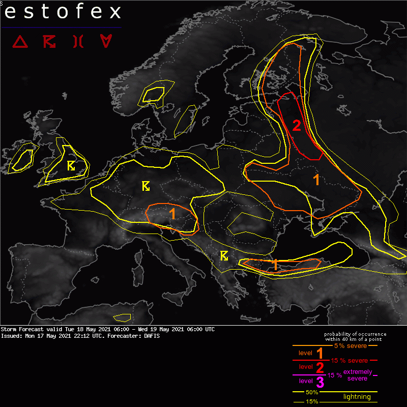 За даними сайту Estofex, Рівненська область опиниться у зоні, де ймовірні значні опади та великий град, під час гроз посилюватиметься вітер до штормових значень.