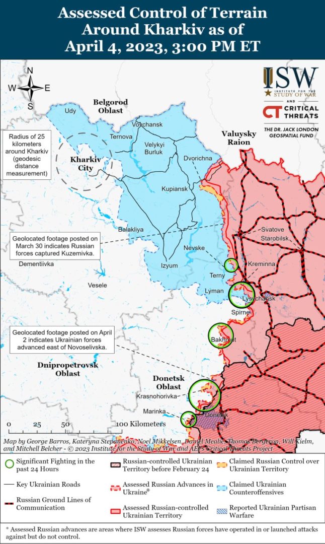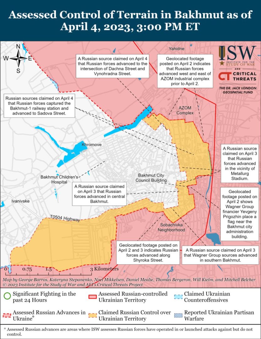 Також аналітики спростували дані про те, що бойовики “Вагнера” захопили залізничну станцію “Бахмут-1” та не підтвердили, захоплення росіянами центральної частини Бахмута.